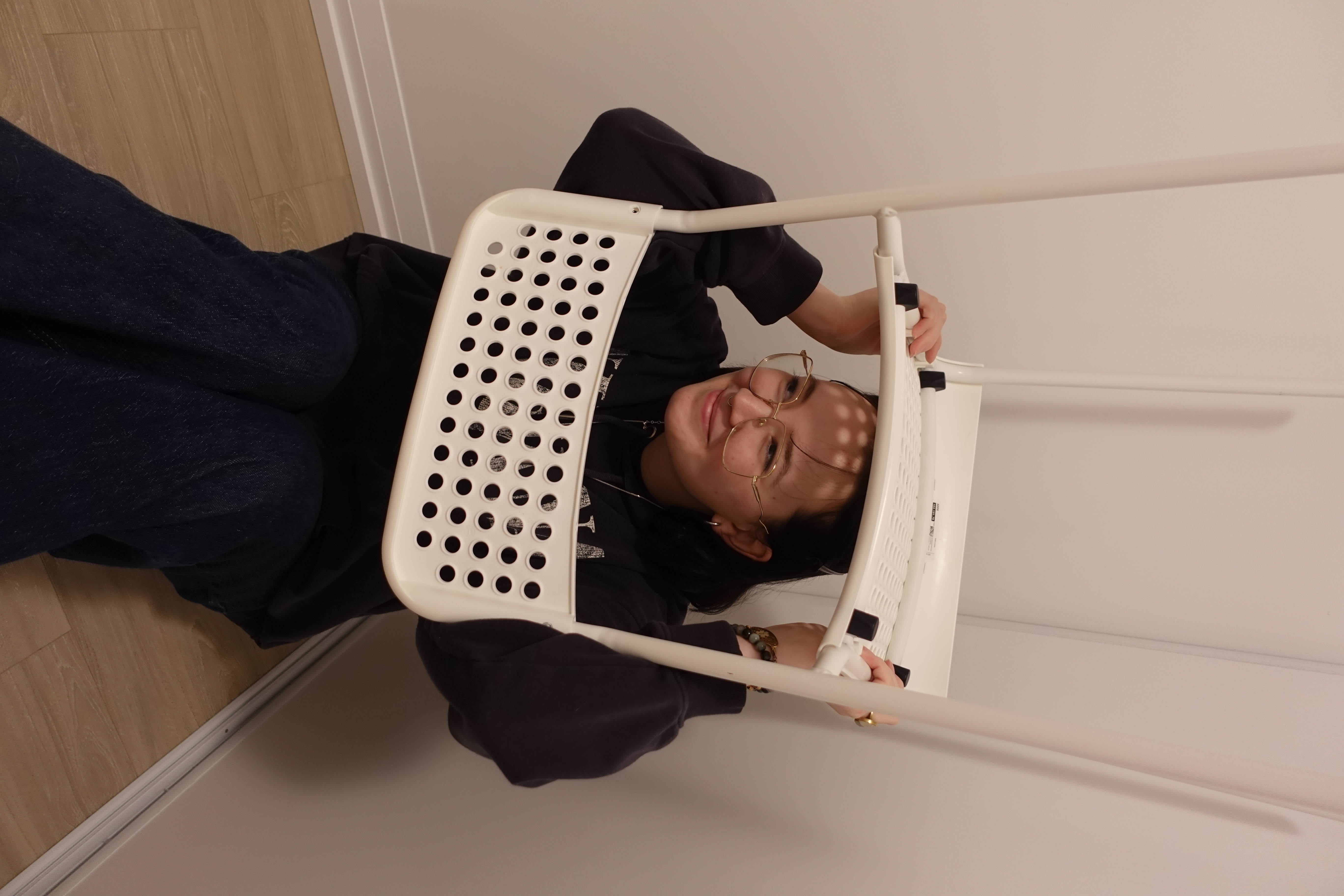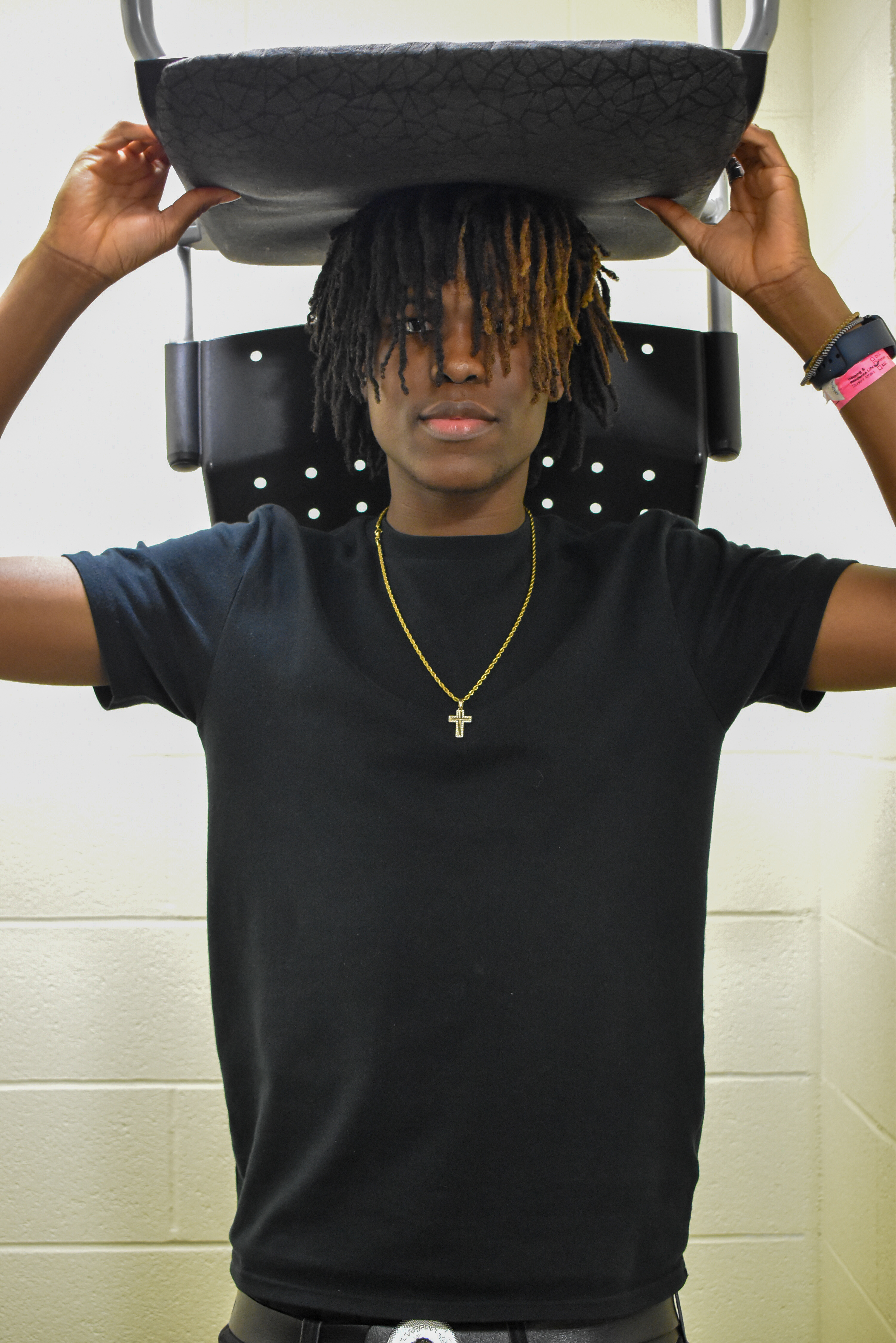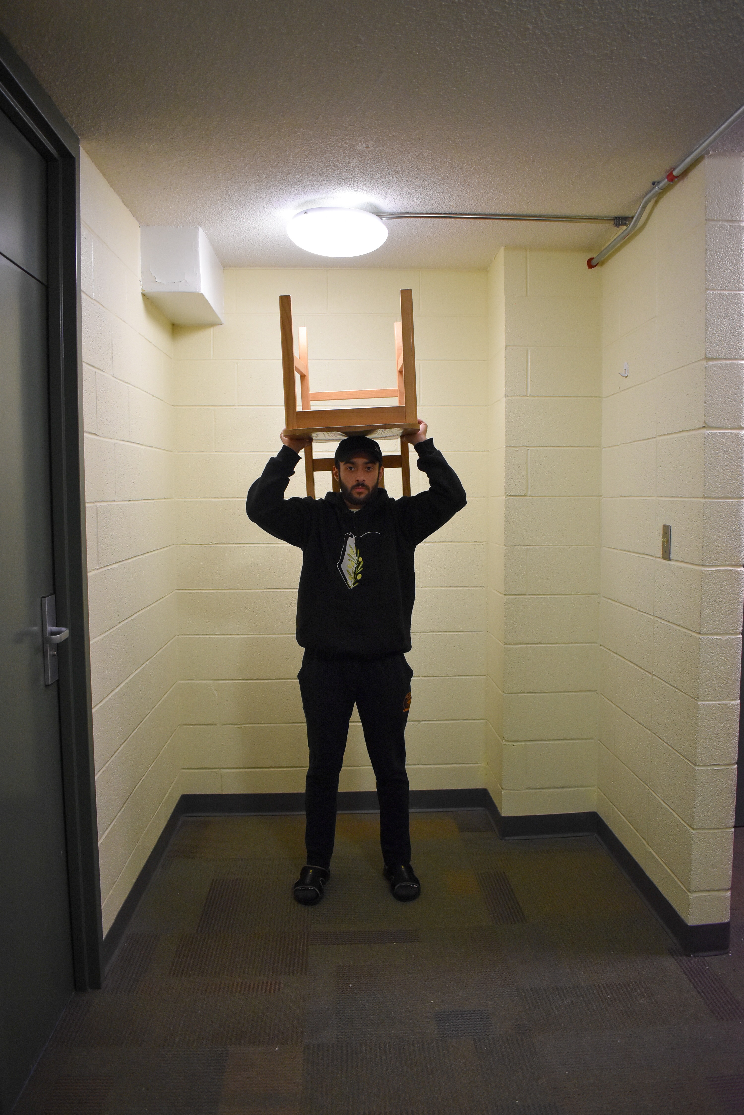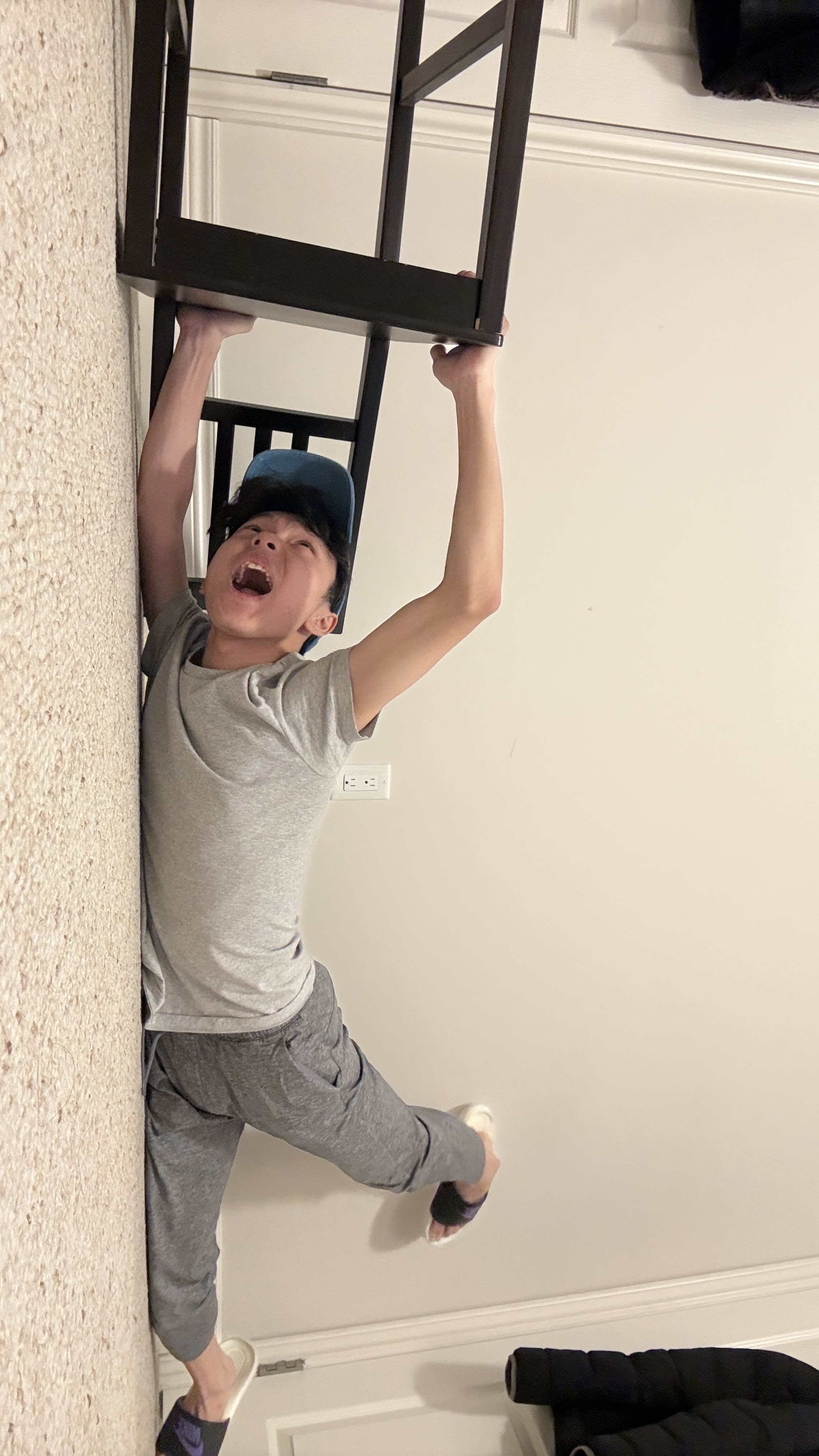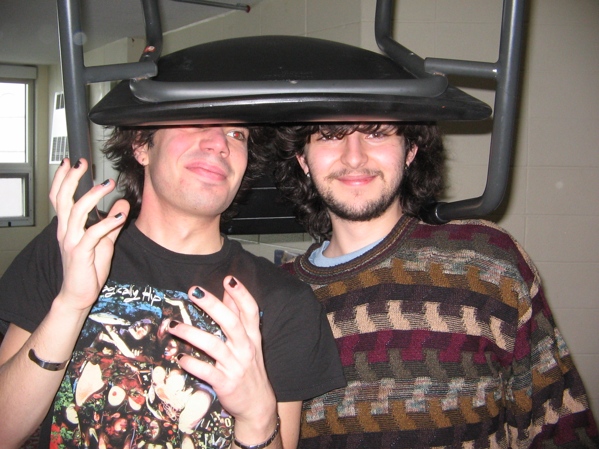 Prompt for participants: Take a picture of someone wearing a chair on their head.