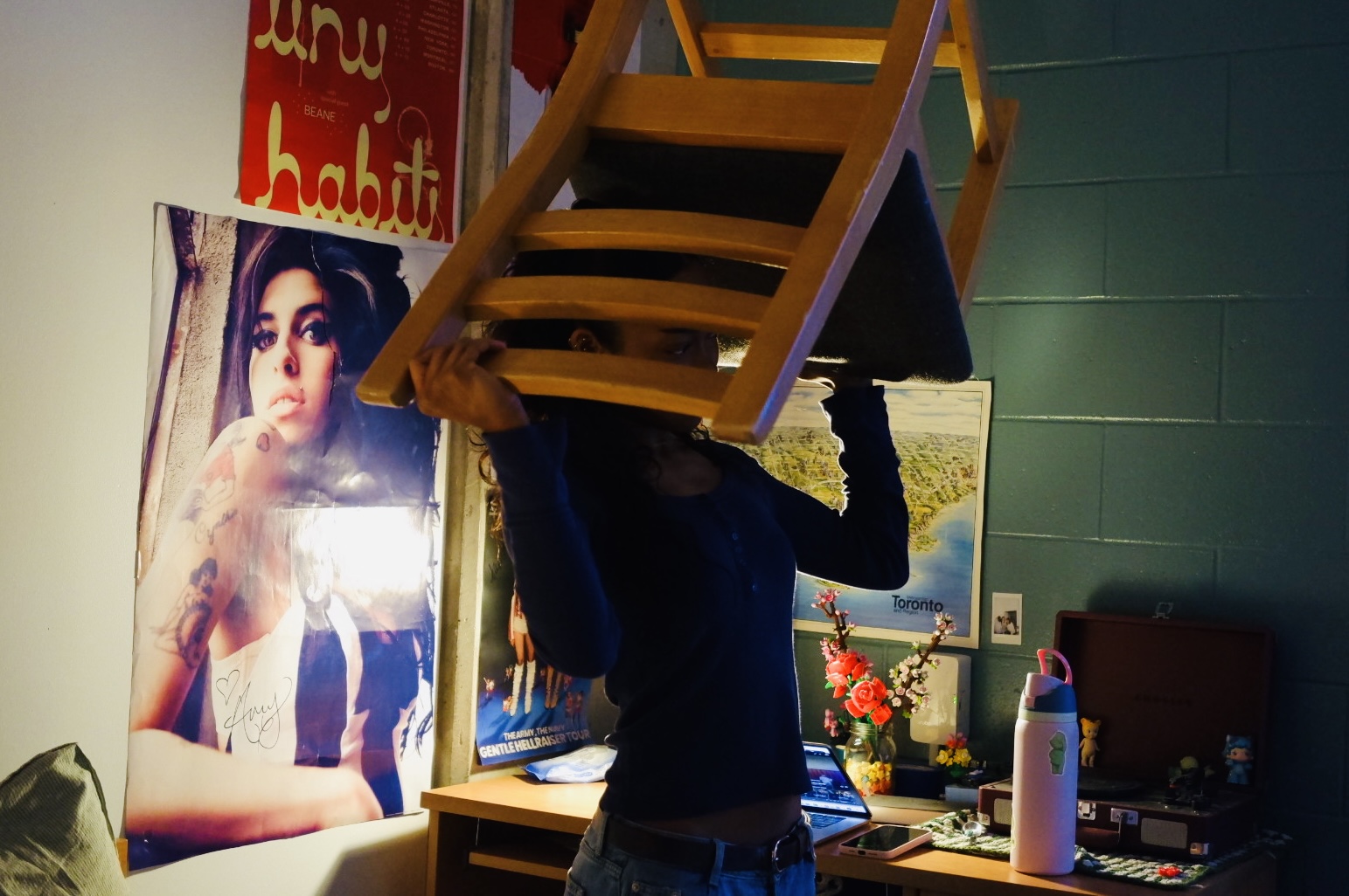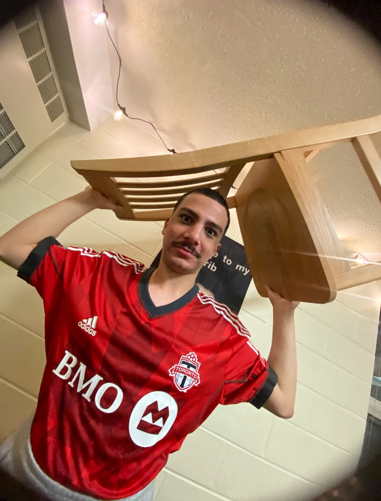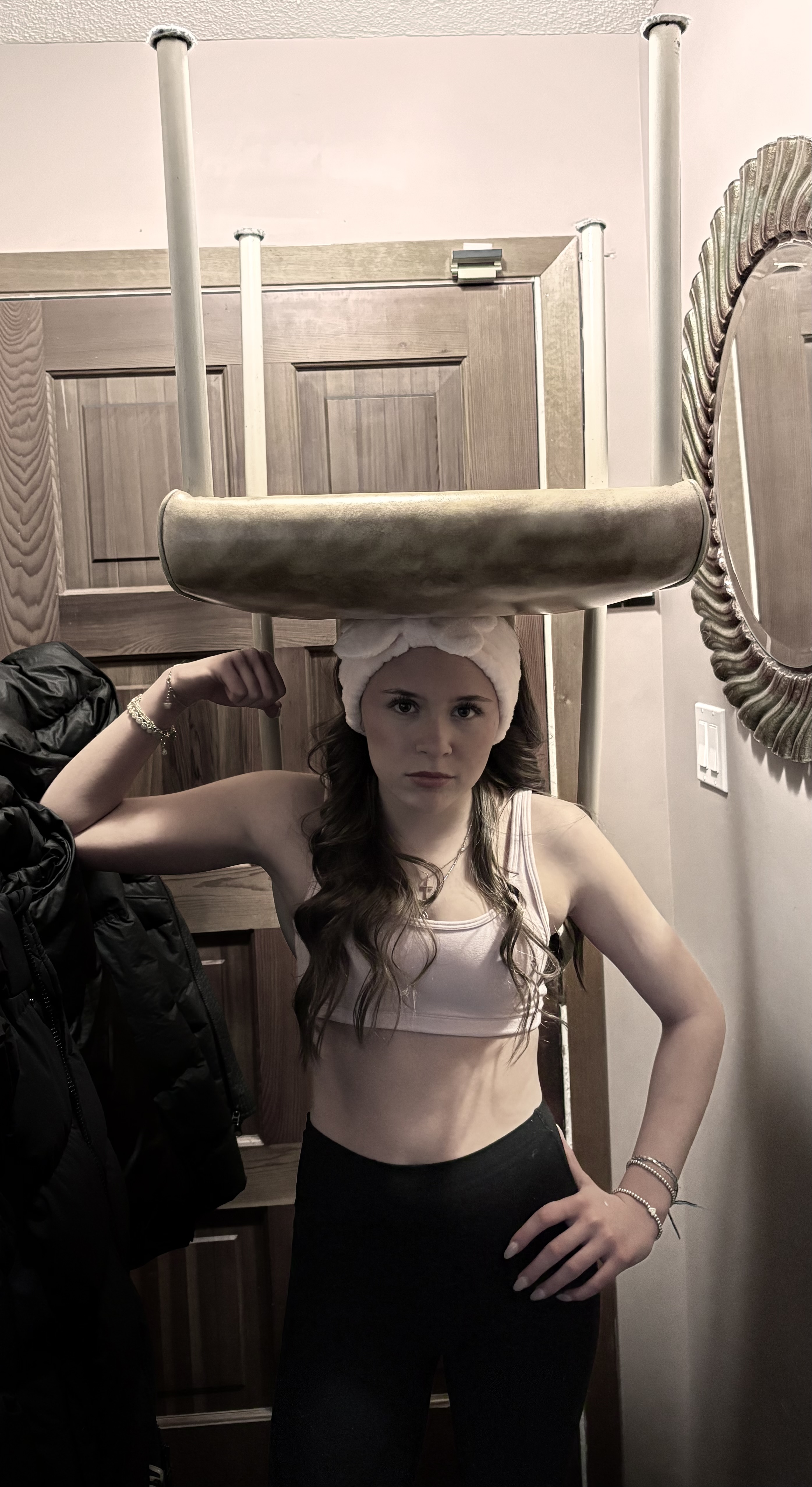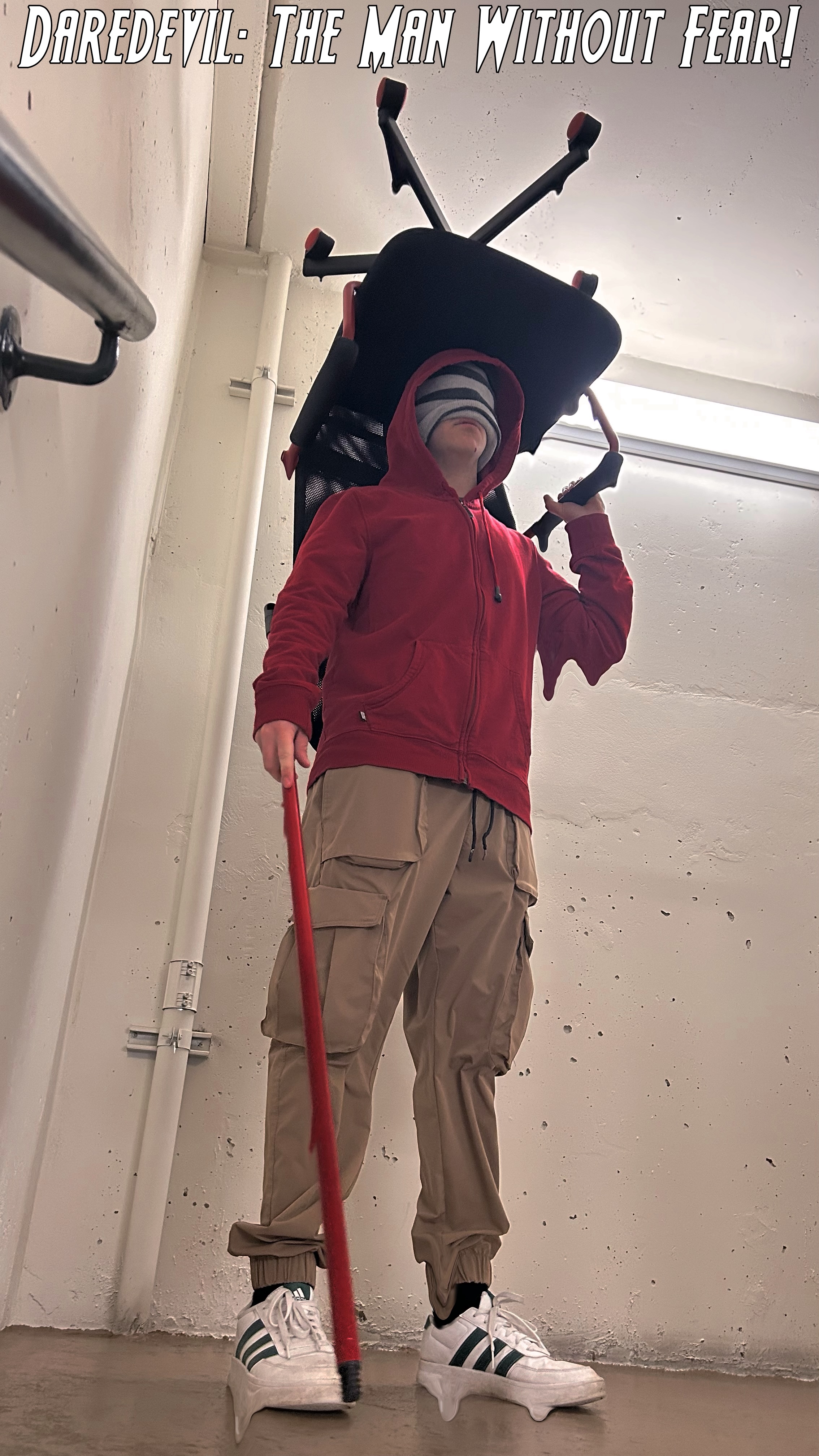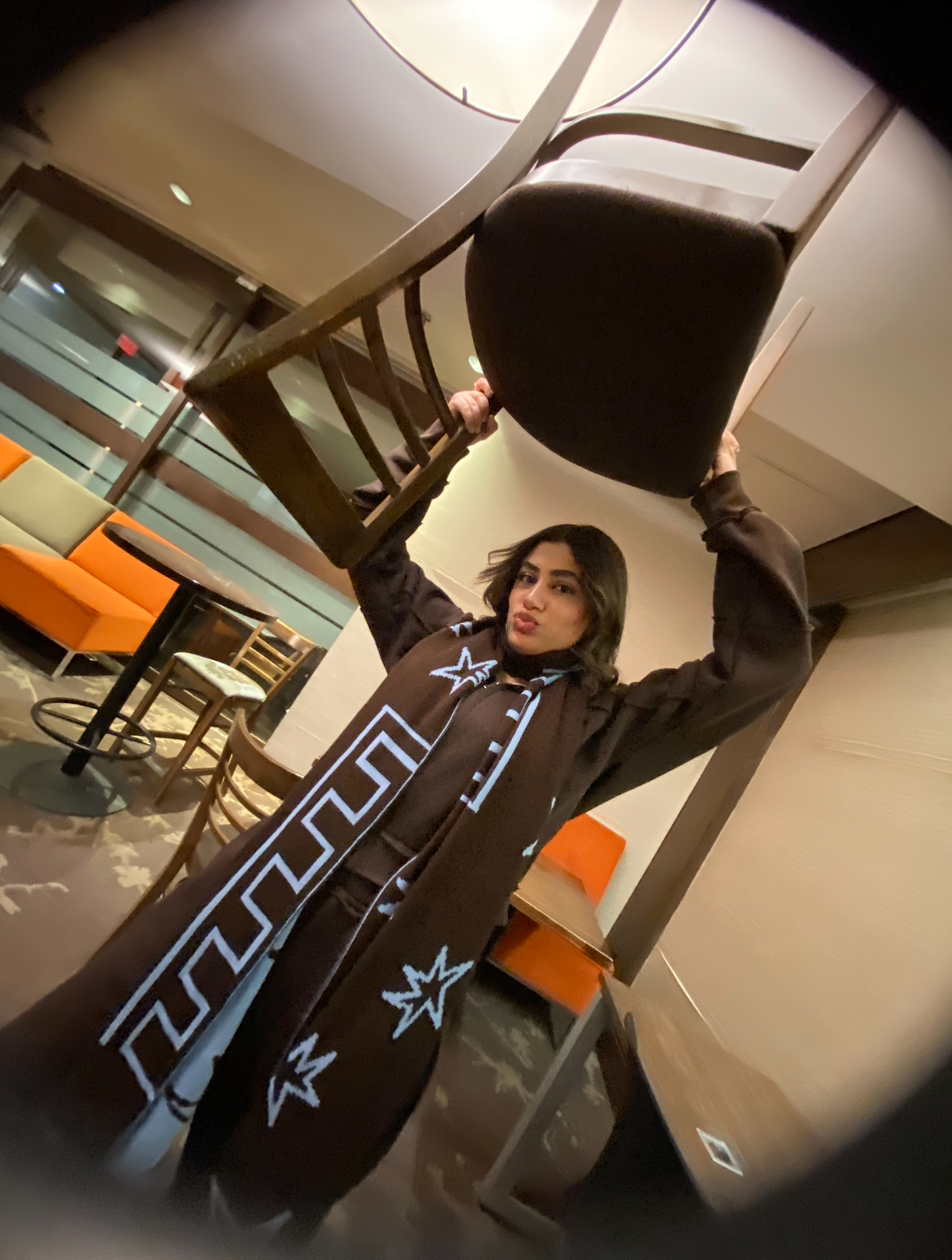 Prompt for participants: Take a picture of someone wearing a chair on their head.