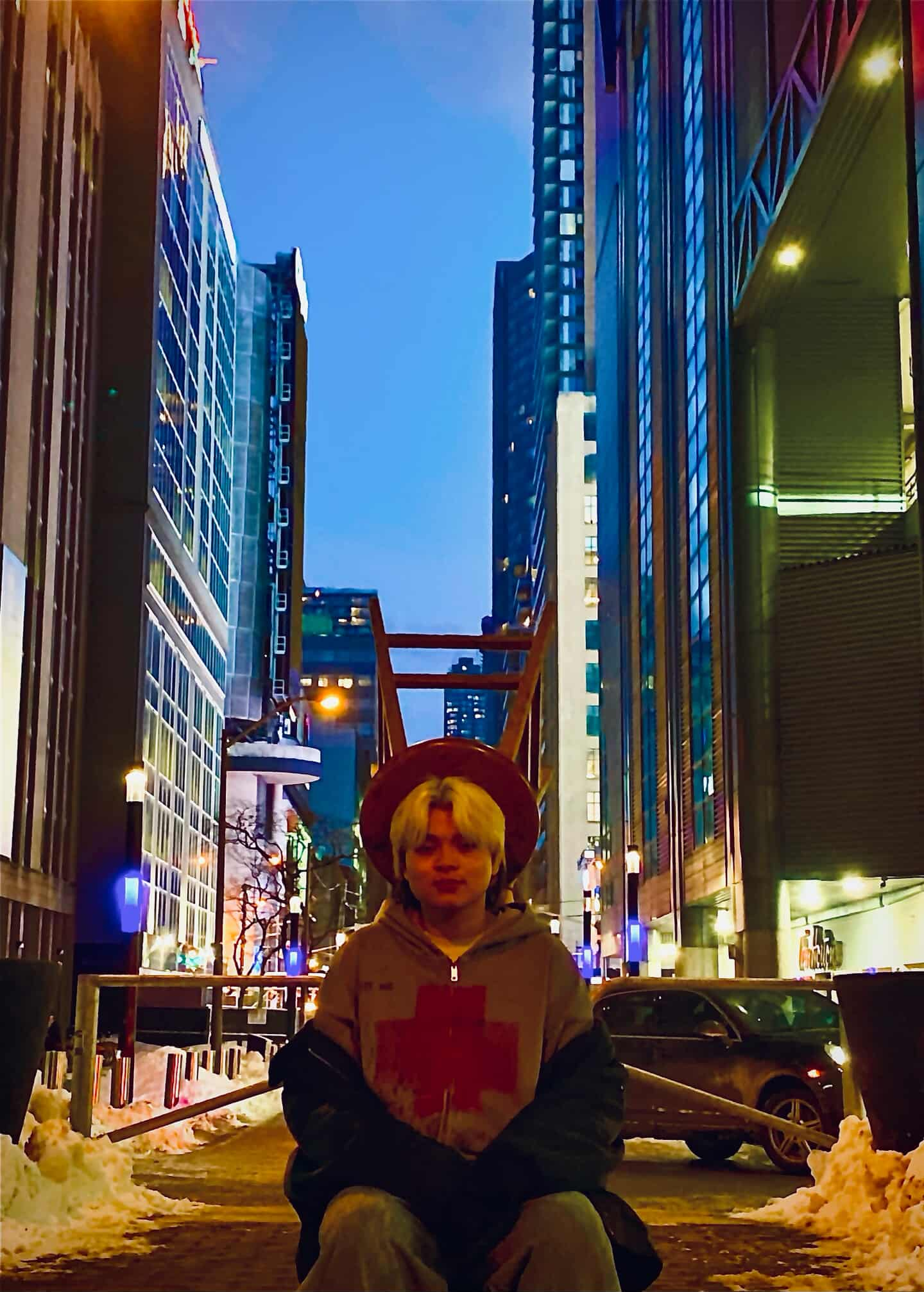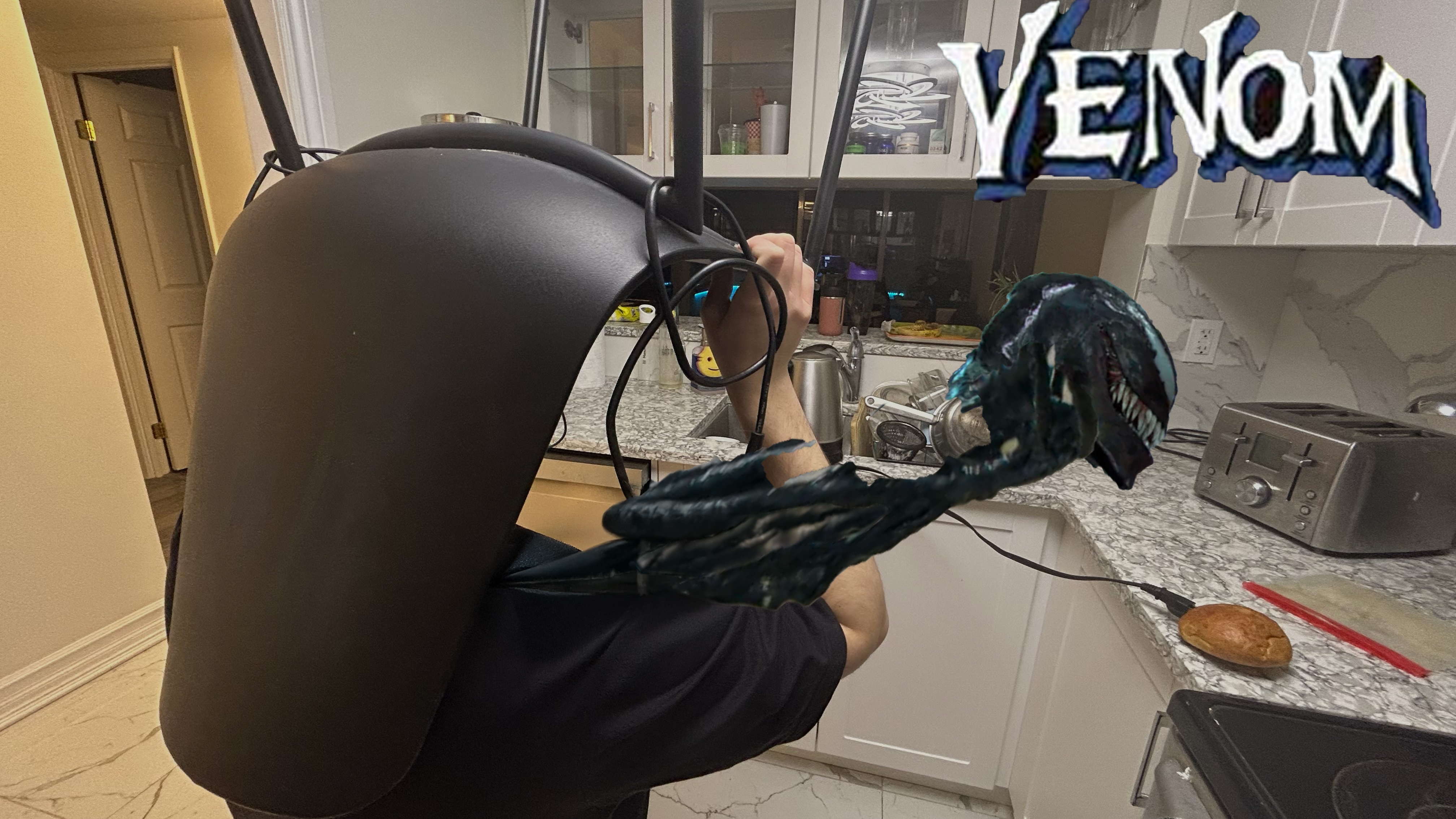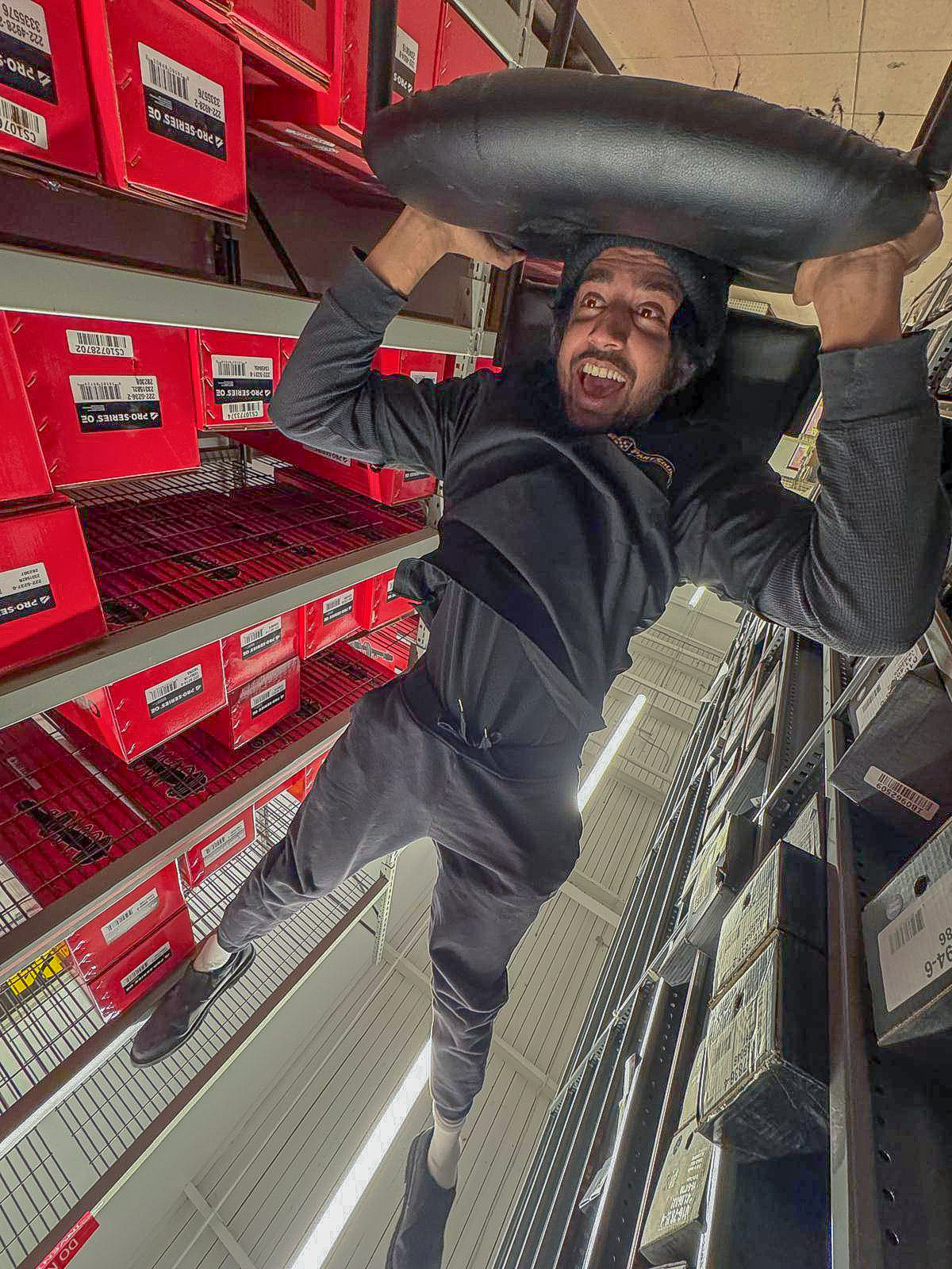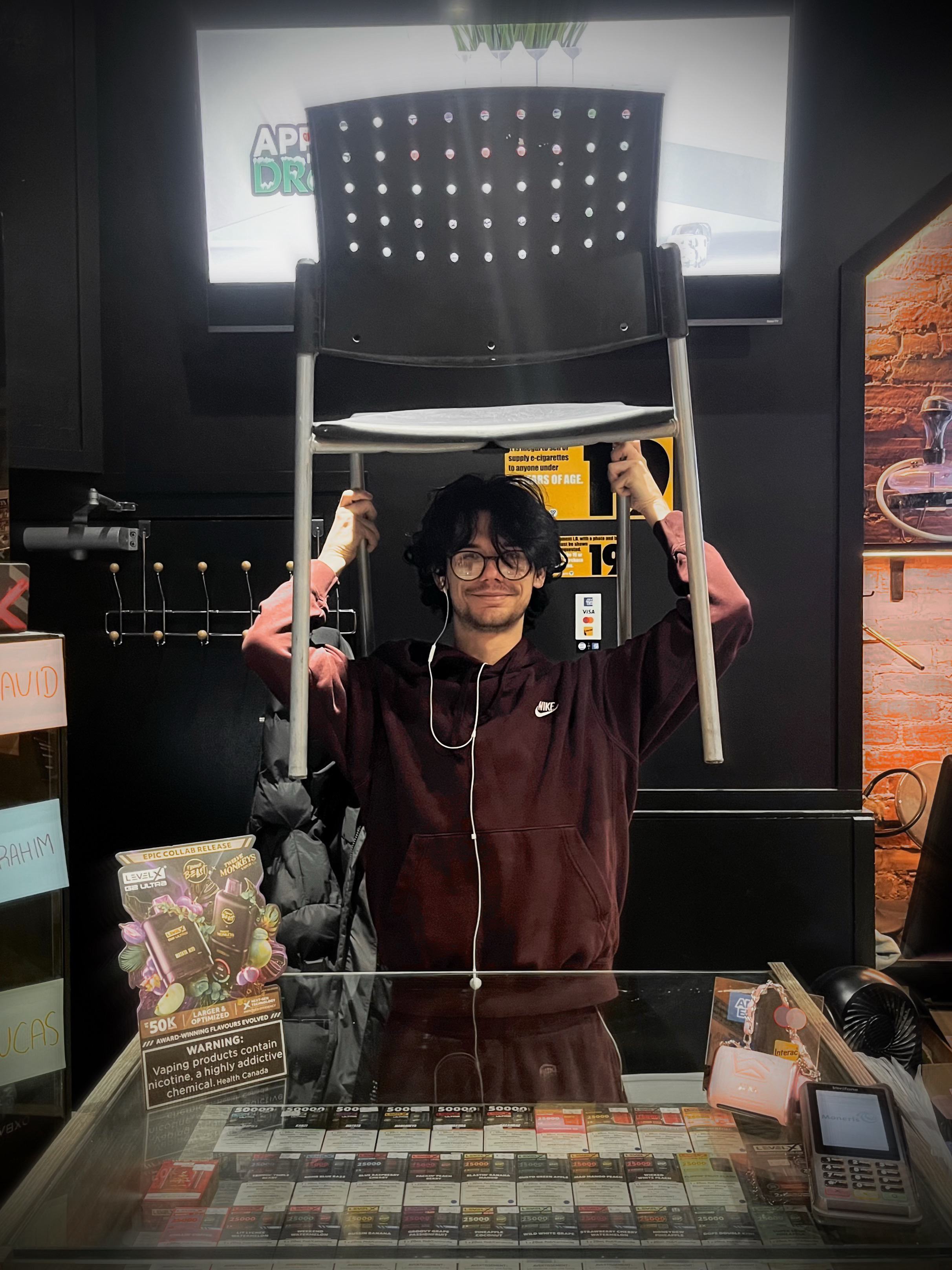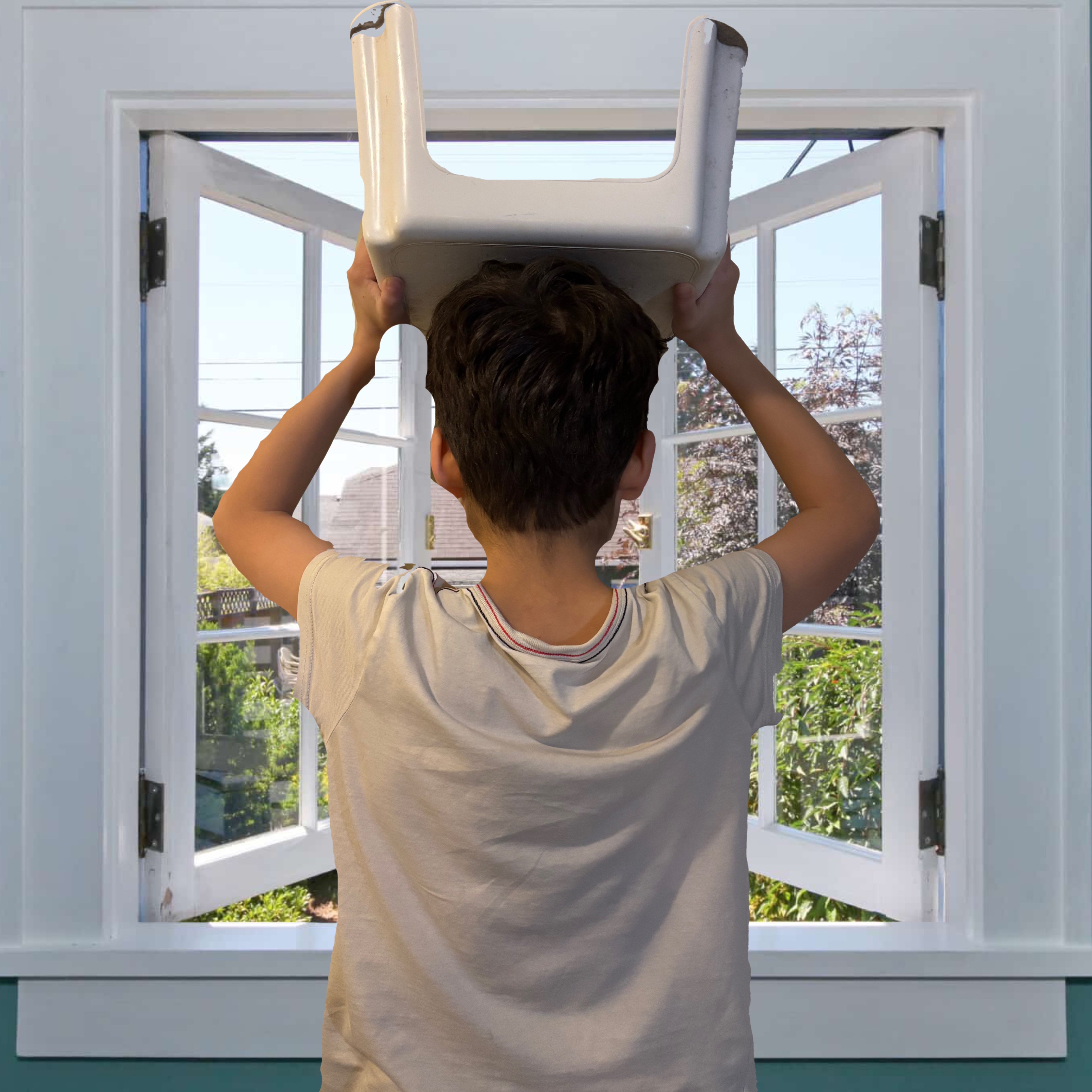 Prompt for participants: Take a picture of someone wearing a chair on their head.