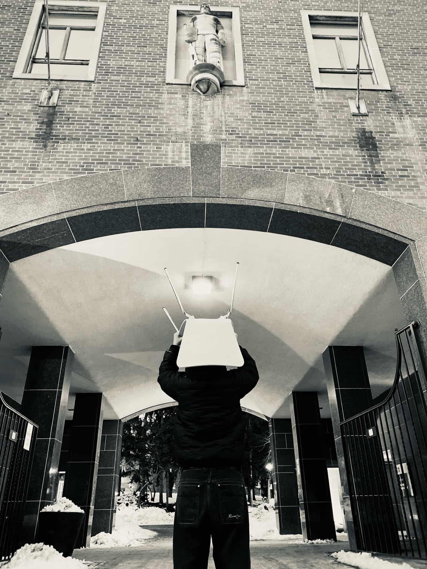 In Éric Chevillard's novel Au Plafond (On the Ceiling), the main character wears a chair upside-down on his head - both an absurdist gesture and a creative horizon from which the story itself unfolds. What is particularly noteworthy about this is how, in the hands of Chevillard, the act of wearing a chair upside down on one's head can be seamlessly integrated into an otherwise unremarkable narrative, without losing its creative edge or sense of humor. This project is an homage to this character in Chevillard's story, expanded into the real world of photographic practice as a documentary of everyday life made to act - for a moment - in ways that might otherwise be inconceivable.