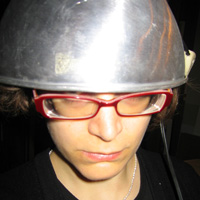 For several years now, Rebecca Michaels has been a fanatic collector of dried flora and fauna, particularly the anatomical limbs of extinct animals. She is currently exploring both the regions of space-time and telekinesis in the hopes that she will someday be able to re-animate her deceased menagerie. She has offered her talents to the Plastic Shamen and is honoured to be among them. Her stratagem in this telekinetic challenge is to approach the flaming torch intensely from 1 angle, but from several points in time until the candle that is, was, and will be spills its wax on the lee side. She will employ her mercurial psycho-enhancatron to channel the cosmic vortex. The attached image was taken with a special psycho -chemical ion filter and captures the gyrating energy waves with stunning clarity. |