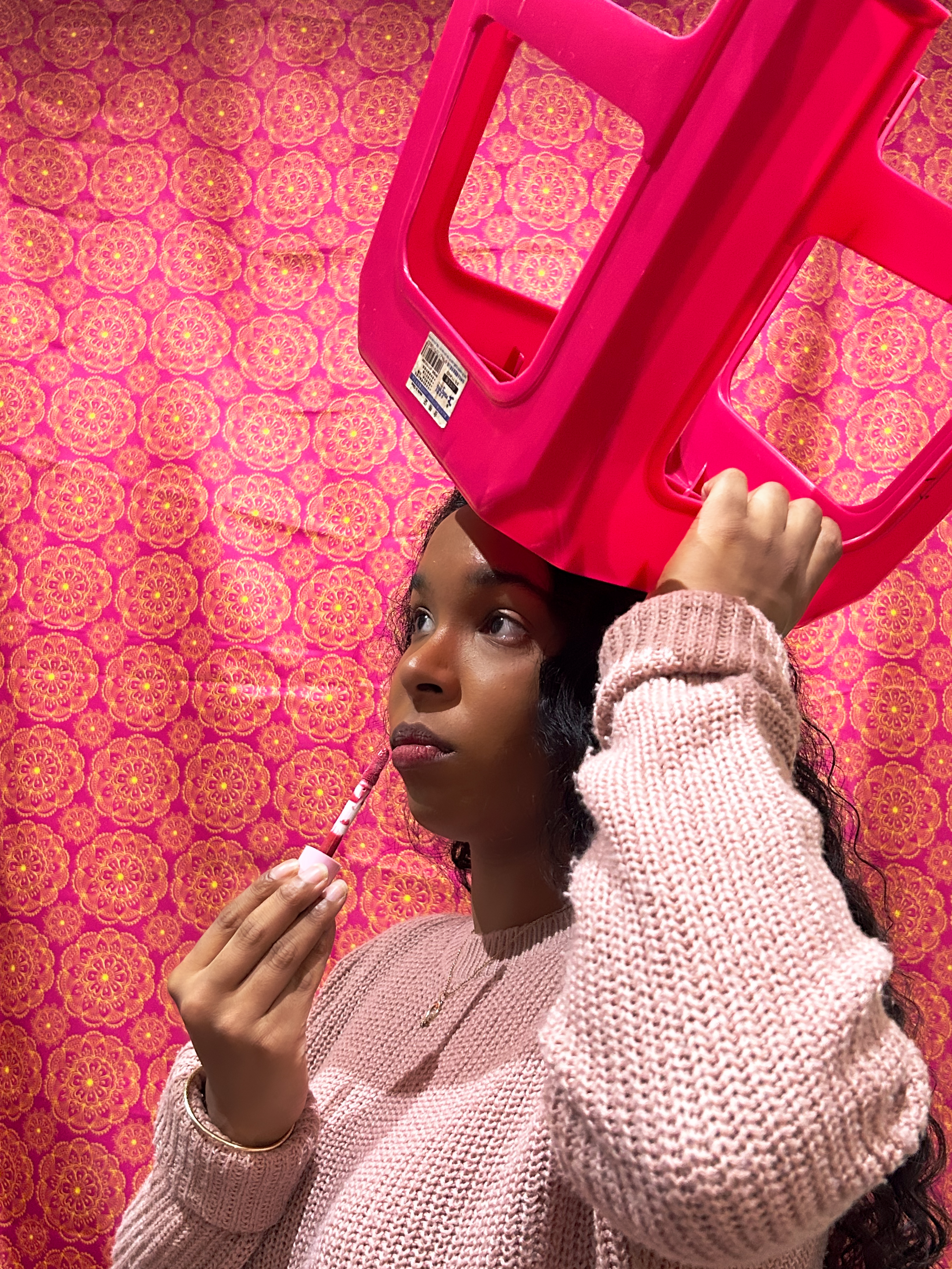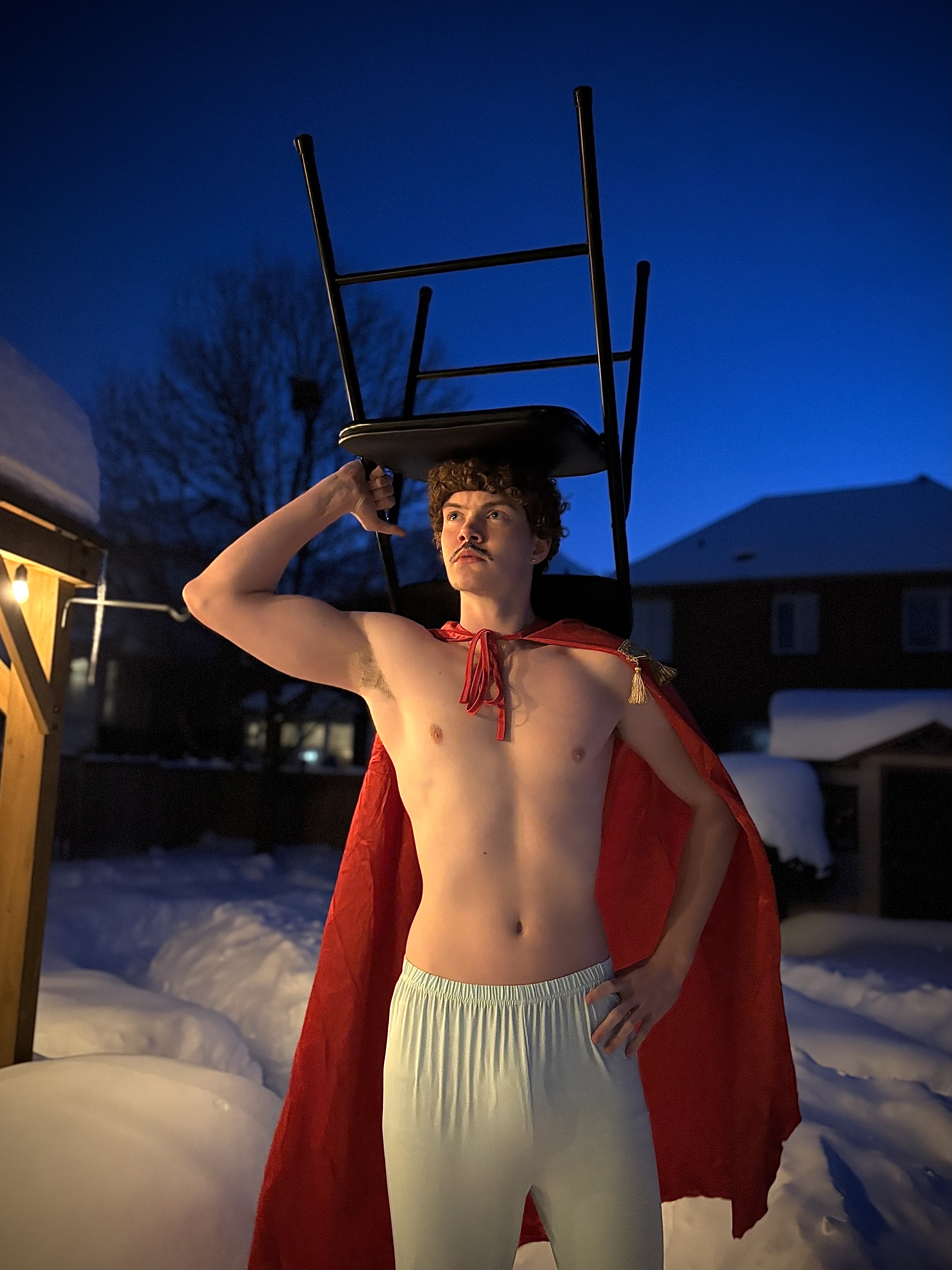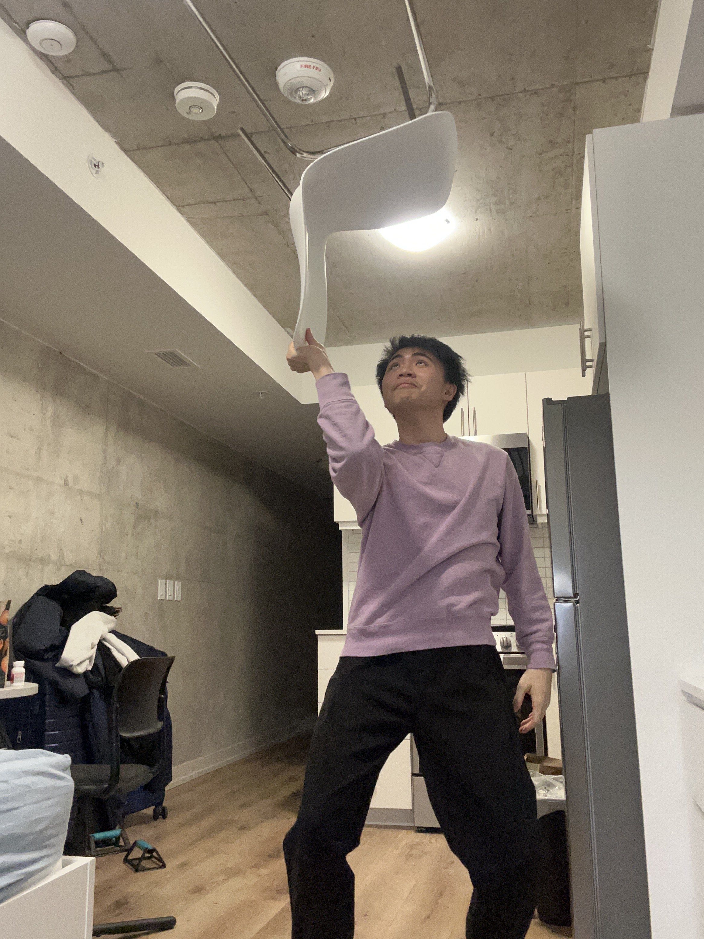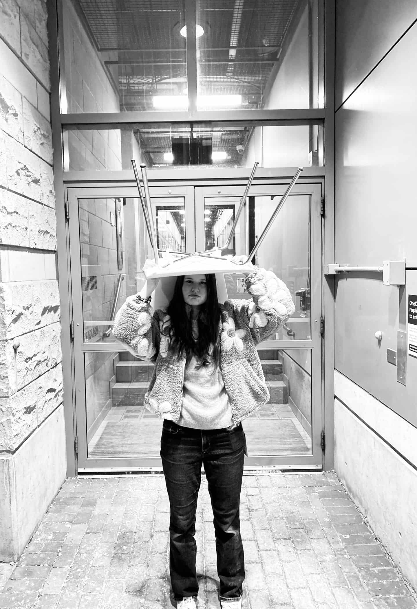 Prompt for participants: Take a picture of someone wearing a chair on their head.