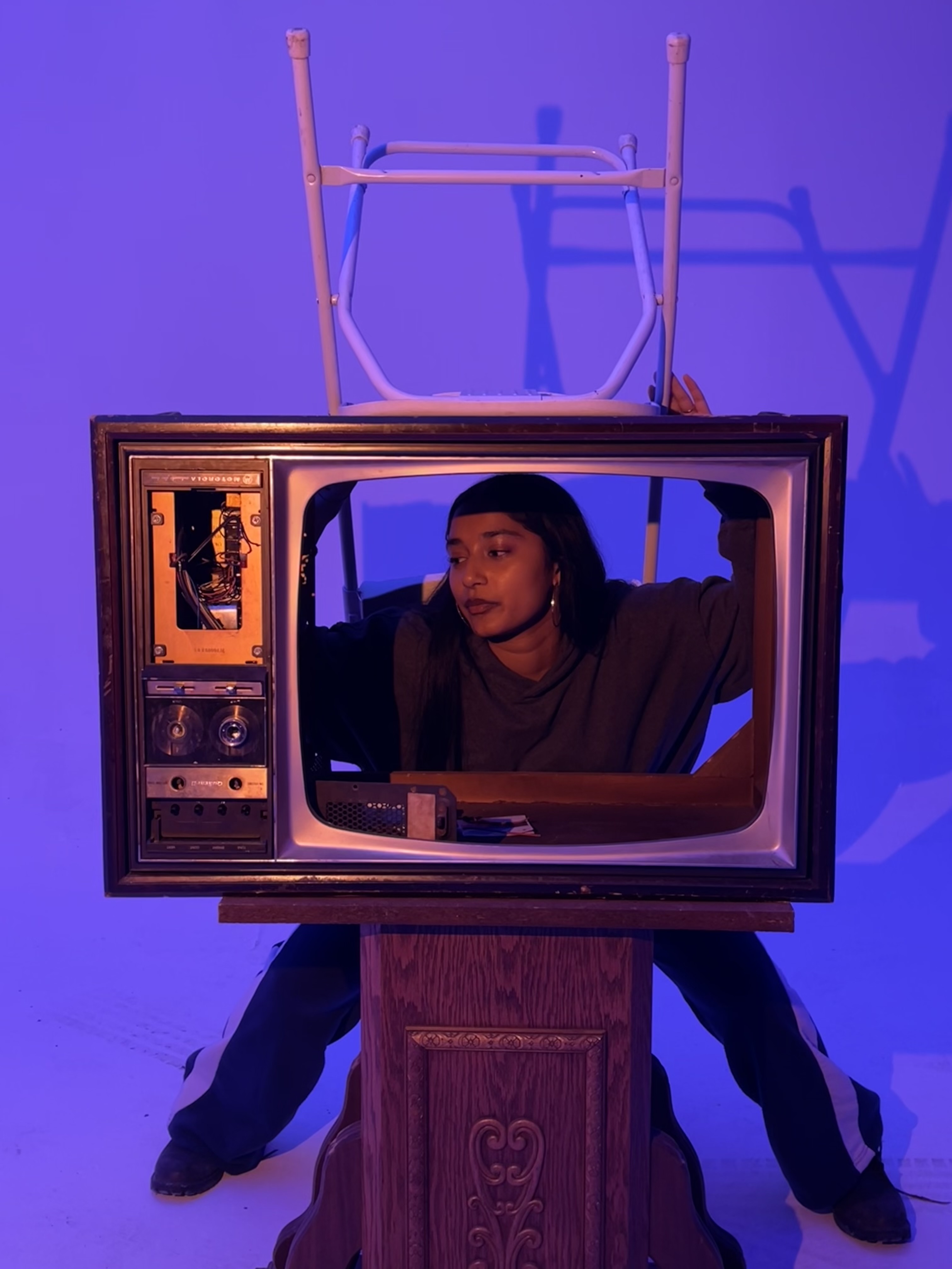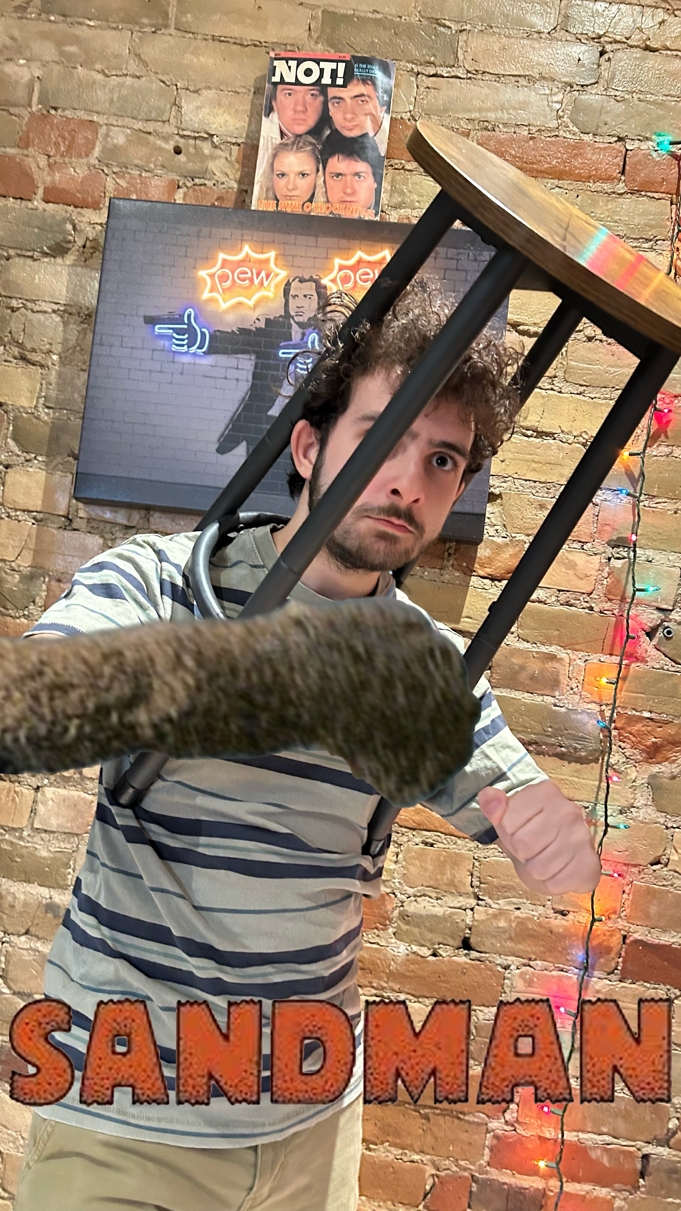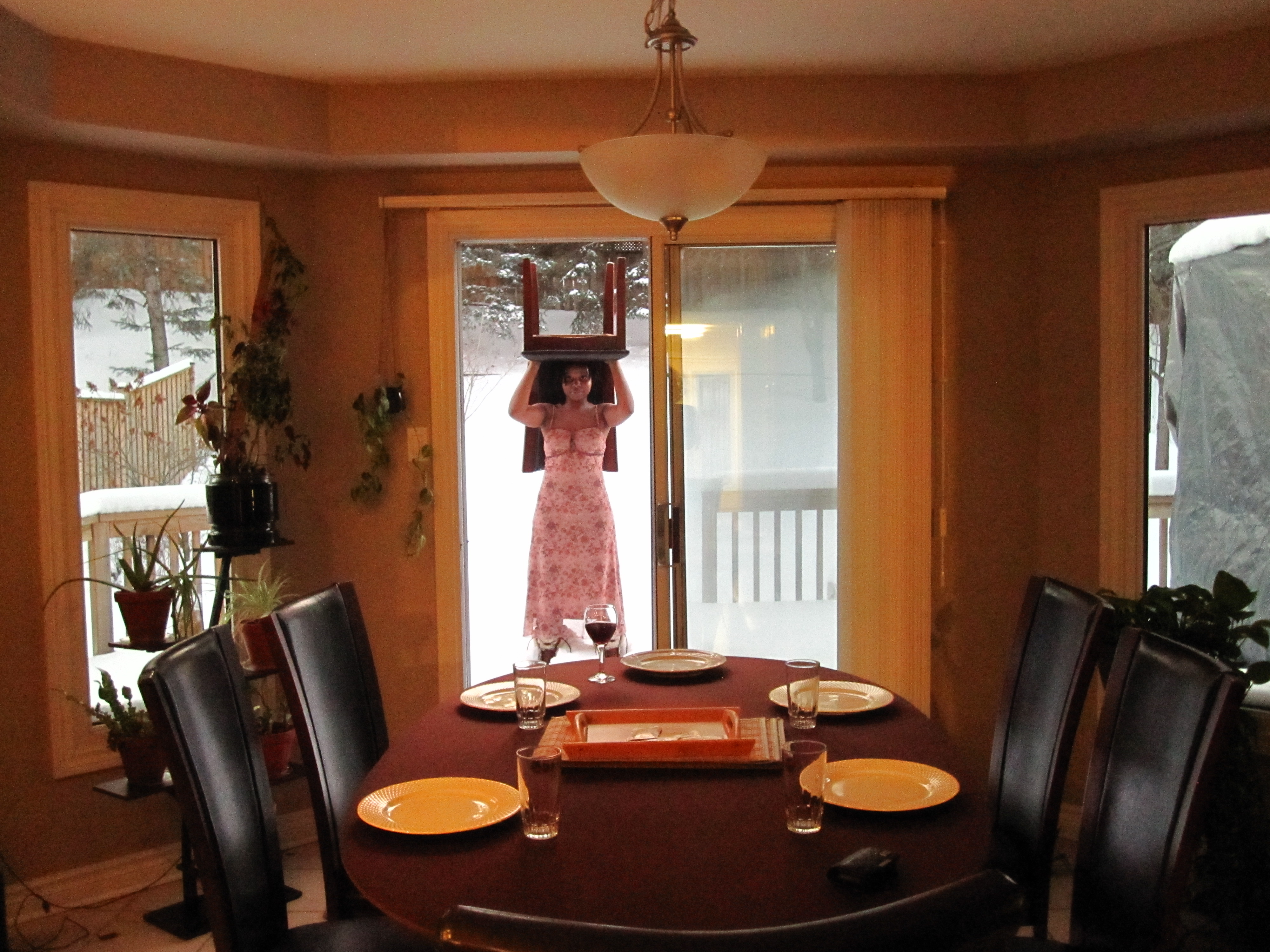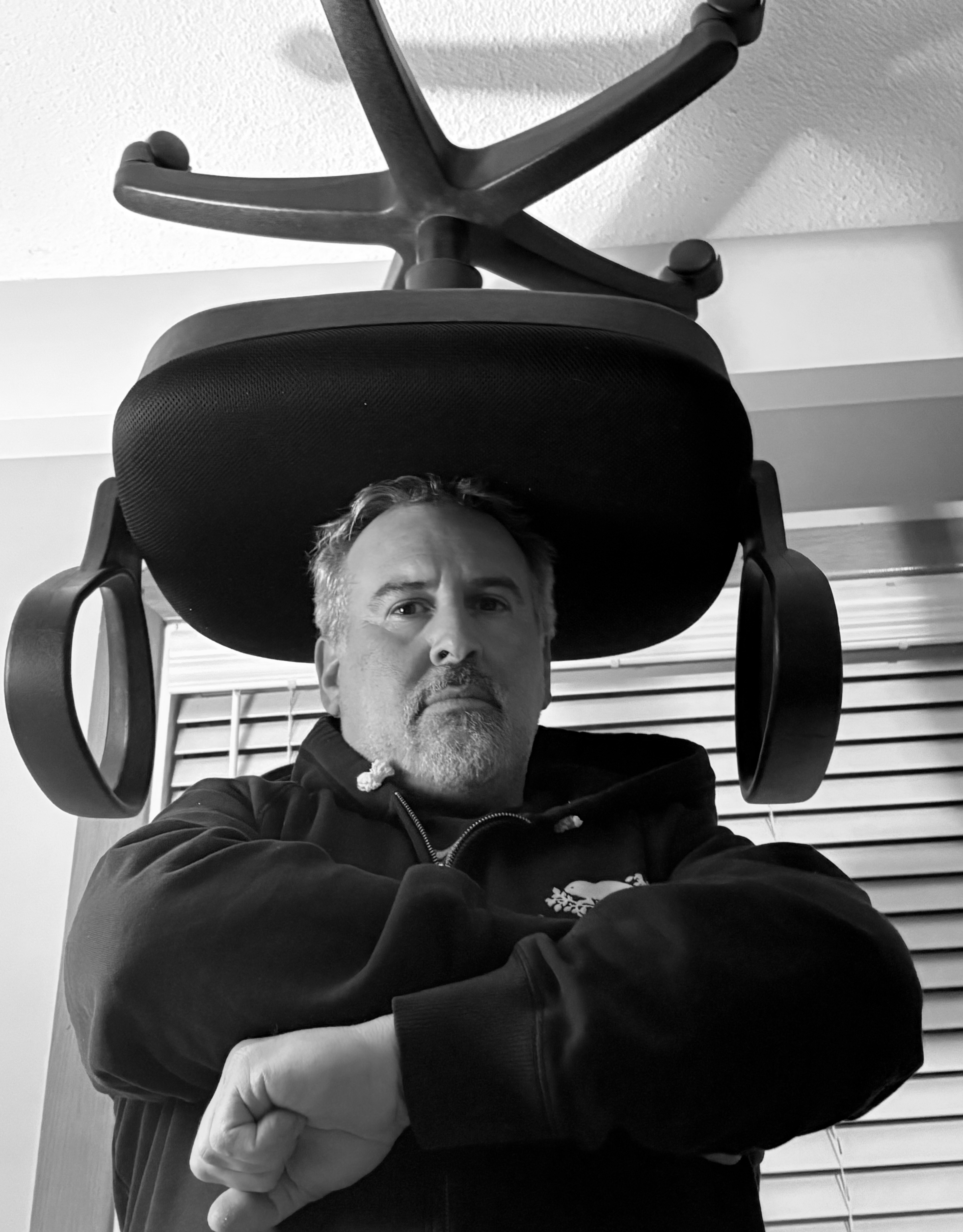 Prompt for participants: Take a picture of someone wearing a chair on their head.